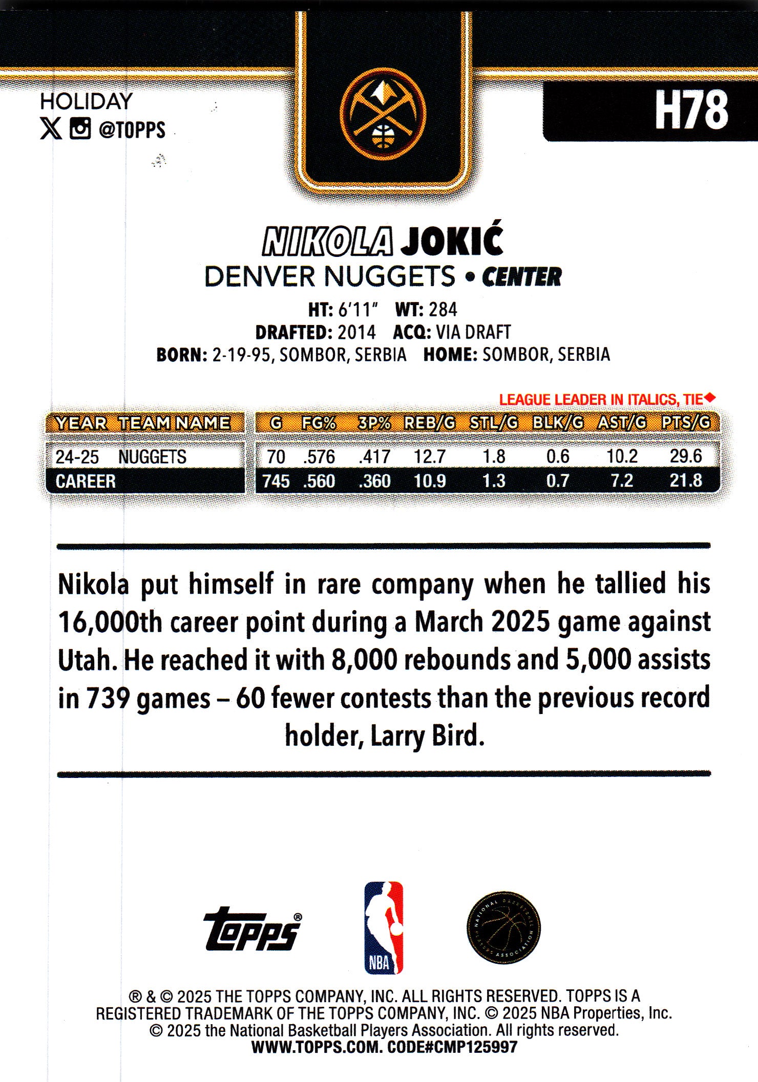 2025 Topps Holiday Glitter Nikola Jokic #H78 Denver Nuggets