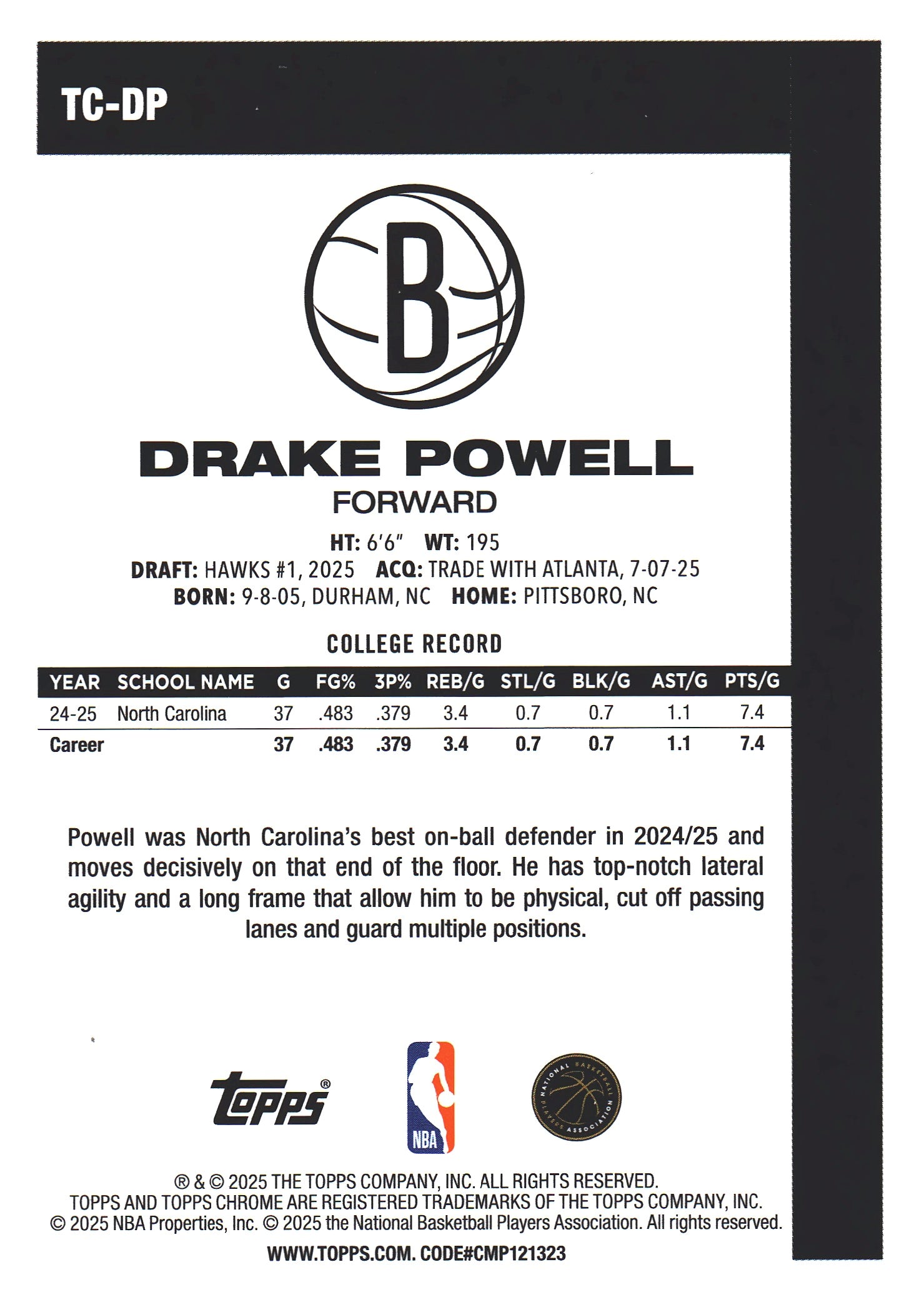 2025 Topps NBA 1980-81 Topps Chrome Mojo Drake Powell RC #TC-DP Brooklyn Nets