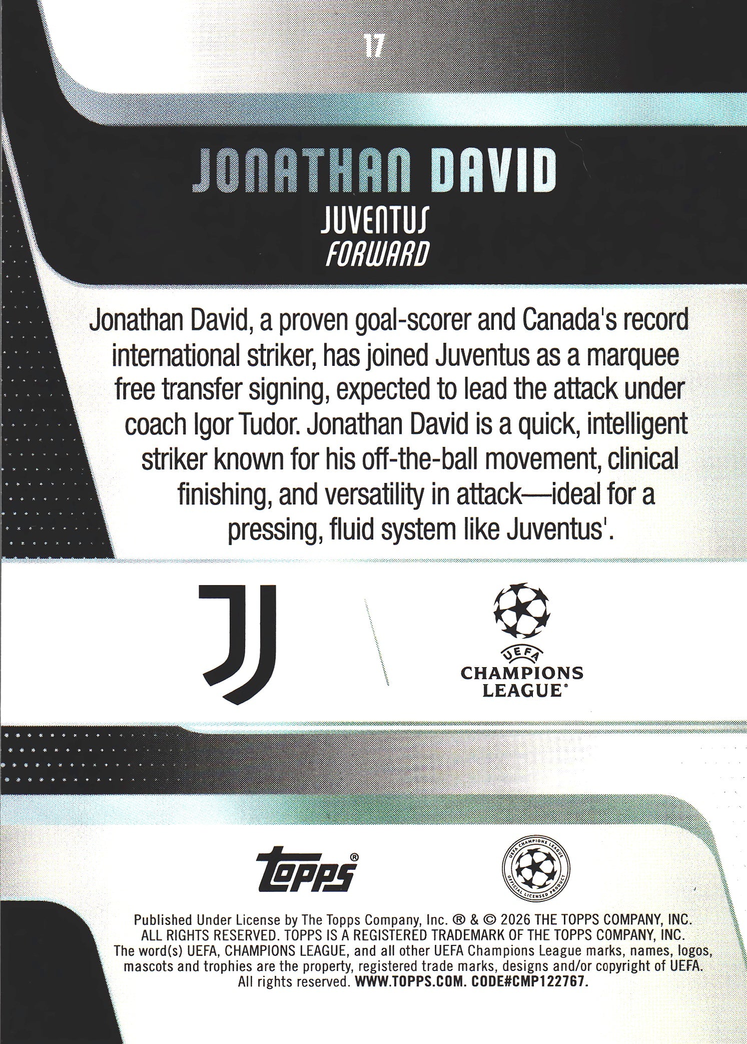 2025 Topps UCC Jonathan David #17 Juventus