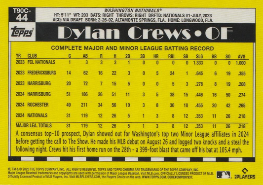 2025 Topps Series 1 Mojo 1990 Topps Baseball 35th Anniversary Chrome Dylan Crews Washington Nationals #T90C-44