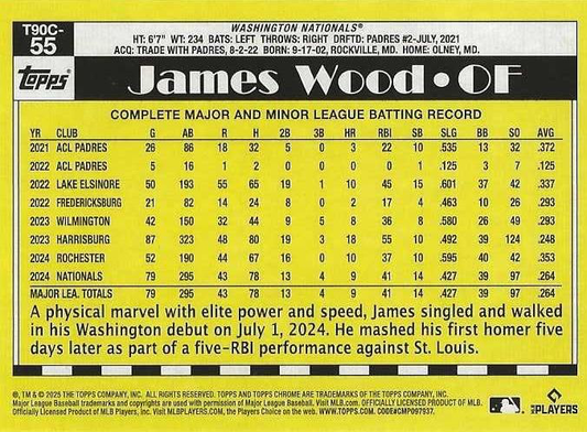 2025 Topps Series 1 Mojo 1990 Topps Baseball 35th Anniversary Chrome James Wood Washington Nationals #T90C-55