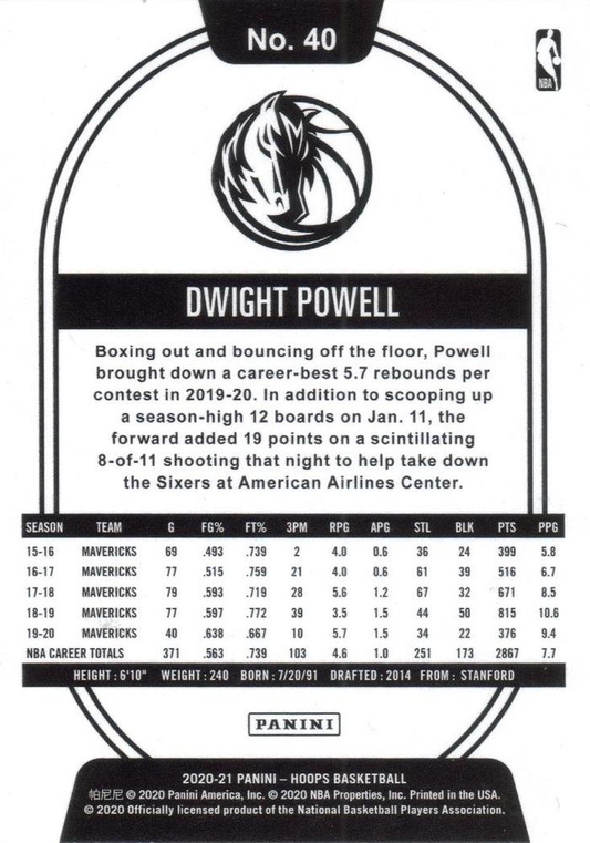 2020 Panini Hoops Dwight Powell #40 Dallas Mavericks