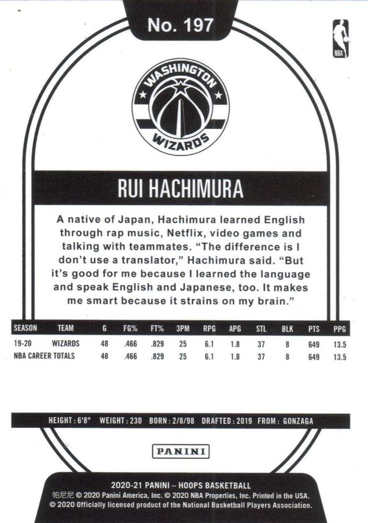 2020 Panini Hoops Rui Hachimura #197 Washington Wizards
