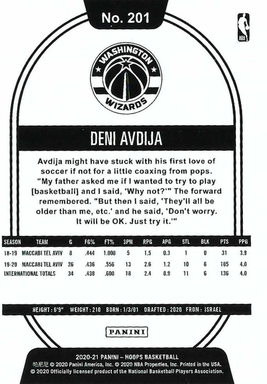 2020 Panini Hoops Deni Avdija RC #201 Washington Wizards