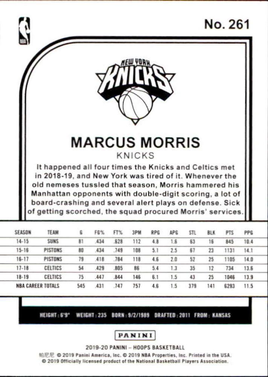 2019 Panini Hoops Marcus Morris #261 New York Knicks