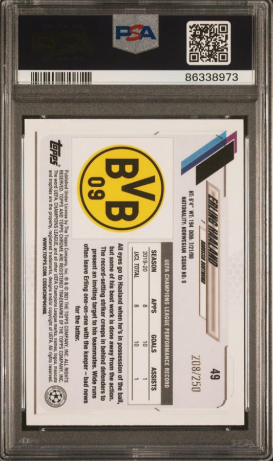 2020 Topps Chrome Purple Diamond /250 Erling Haaland Borussia Dortmund #49 PSA 8