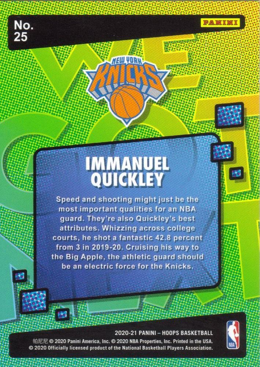 2020 Panini Hoops We Got Next RC Immanuel Quickley #25 New York Knicks