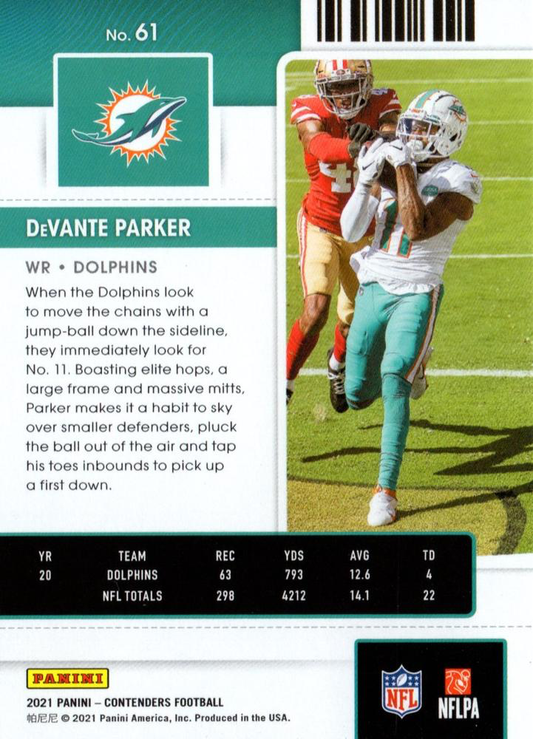 2021 Panini Contenders DeVante Parker Miami Dolphins #61