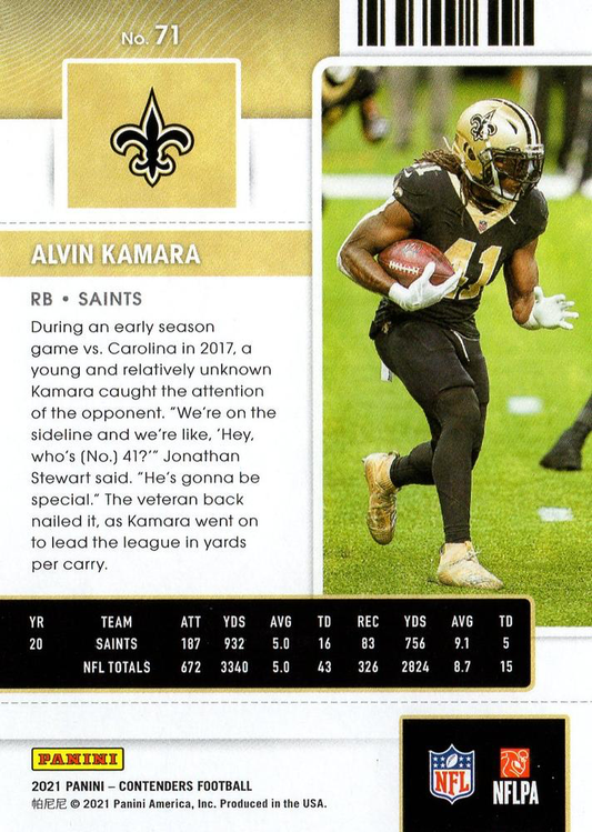 2021 Panini Contenders Alvin Kamara New Orleans Saints #71