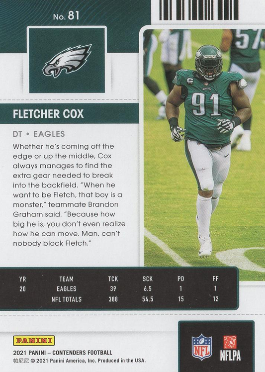 2021 Panini Contenders Fletcher Cox Philadelphia Eagles #81