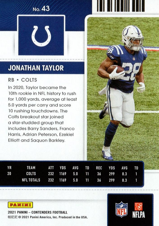 2021 Panini Contenders Jonathan Taylor Indianapolis Colts #43