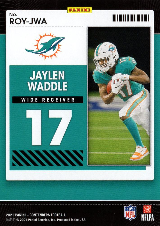 2021 Panini Contenders Rookie of the Year Contenders Jaylen Waddle RC Miami Dolphins #ROY-JWA