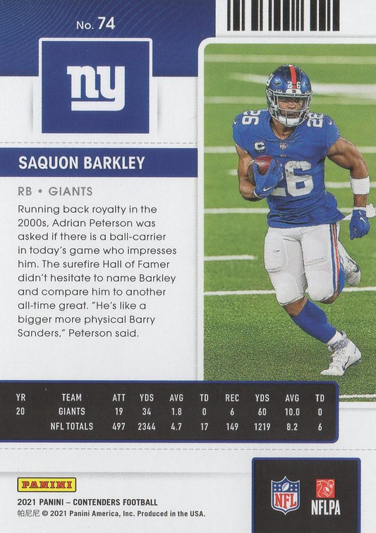 2021 Panini Contenders Saquon Barkley New York Giants #74