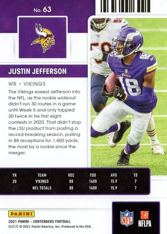2021 Panini Contenders Justin Jefferson Minnesota Vikings #63