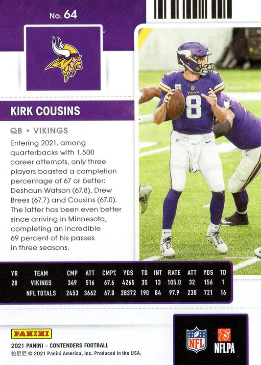 2021 Panini Contenders Kirk Cousins Minnesota Vikings #64