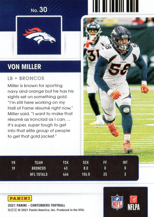 2021 Panini Contenders Von Miller Denver Broncos #30