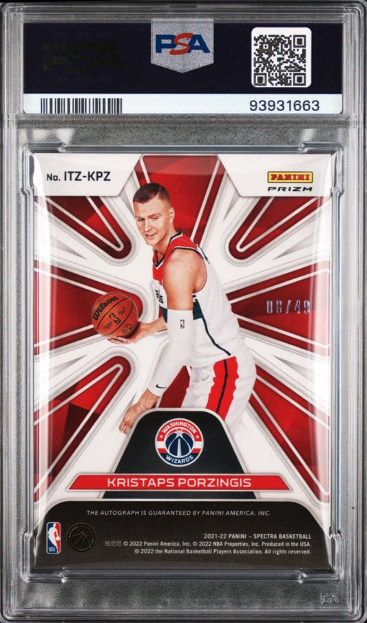 2021 Panini Spectra Astral Auto /49 Kristaps Porzingis Dallas Mavericks #ITZ-KPZ PSA 8/10