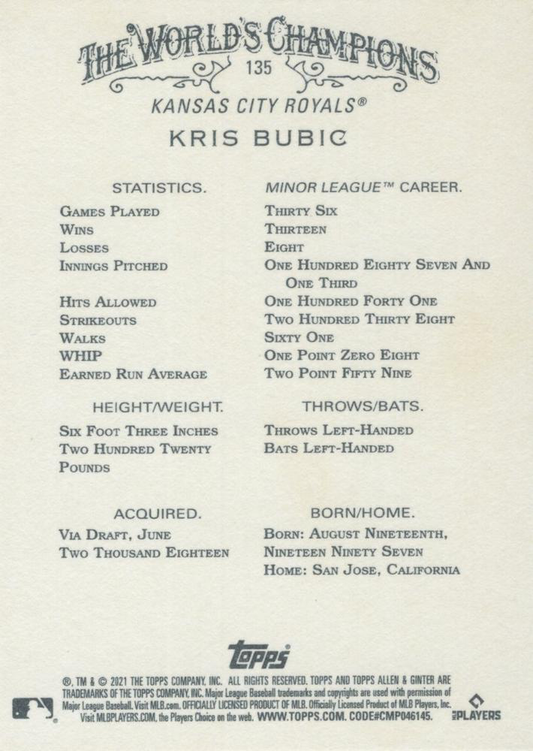 2021 Topps Allen & Ginter Kris Bubic KC Royals #135
