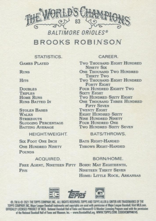 2021 Topps Allen & Ginter Brooks Robinson Baltimore Orioles #83