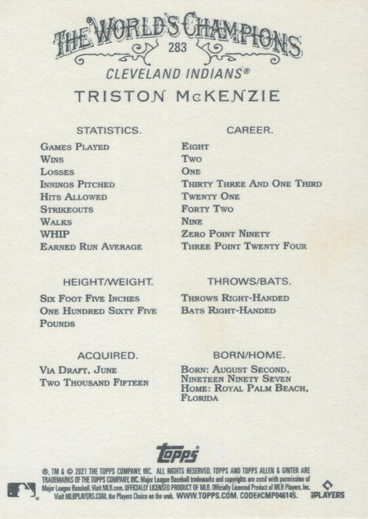 2021 Topps Allen & Ginter Triston McKenzie RC Cleveland Guardians #283