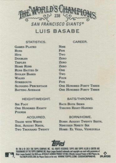 2021 Topps Allen & Ginter Luis Basabe RC San Fransico Giants #238
