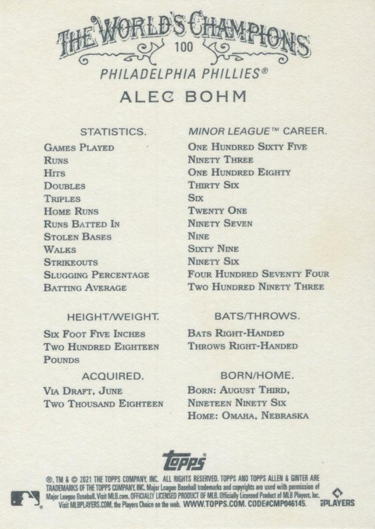 2021 Topps Allen & Ginter Alec Bohm Philadelphia Phillies RC #100