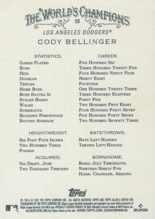 2021 Topps Allen & Ginter Cody Bellinger Los Angeles Dodgers #98