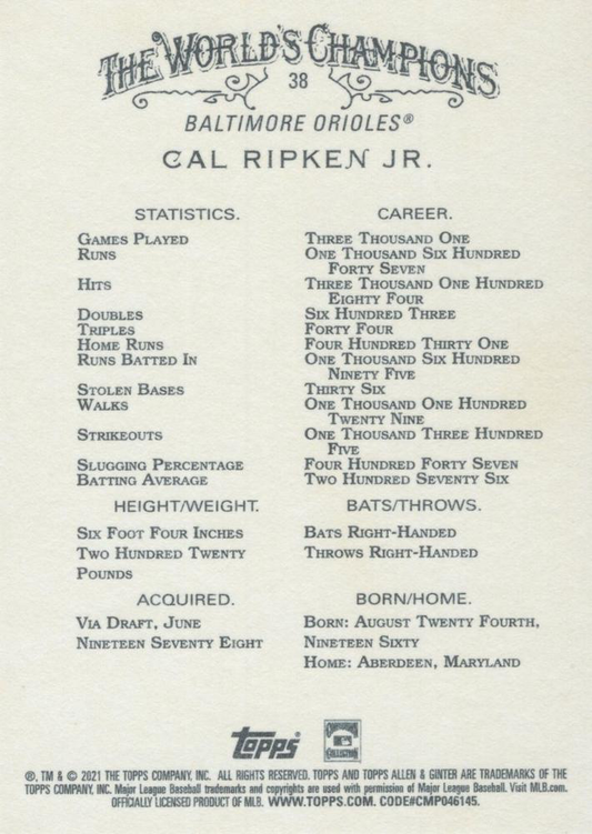 2021 Topps Allen & Ginter Cal Ripken Jr. Baltimore Orioles #38
