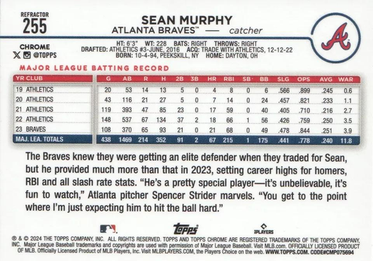 2024 Topps Chrome Refractor Parallel Sean Murphy Atlanta Braves #255