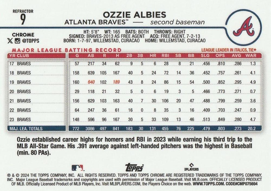 2024 Topps Chrome Refractor Parallel Ozzie Albies Atlanta Braves #9