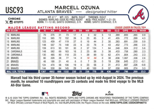 2024 Topps Chrome Update Marcell Ozuna Atlanta Braves #USC93