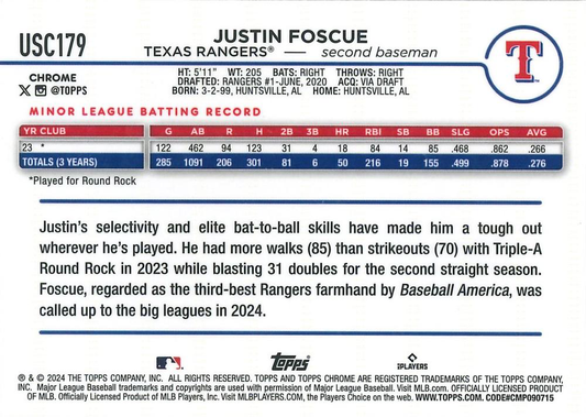 2024 Topps Chrome Update X-Fractor Parallel Justin Foscue RC Texas Rangers #USC179