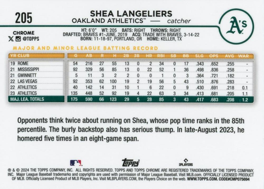 2024 Topps Chrome Shea Langeliers Oakland Athletics #205