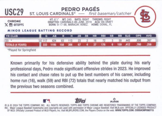 2024 Topps Chrome Update X-Fractor Parallel Pedro Pages RC St. Louis Cardinals #USC29