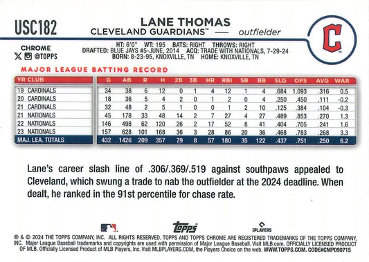 2024 Topps Chrome Update X-Fractor Parallel Lane Thomas Cleveland Guardians #USC182