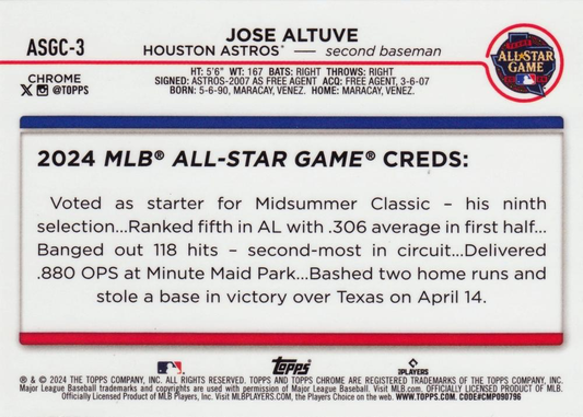 2024 Topps Chrome Update All Star Game Chrome Jose Altuve Houston Astros #ASGC-3