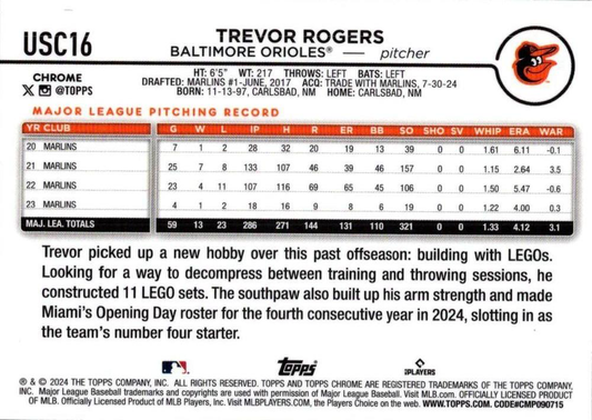 2024 Topps Chrome Update X-Fractor Parallel Trevor Rogers Baltimore Orioles #USC16