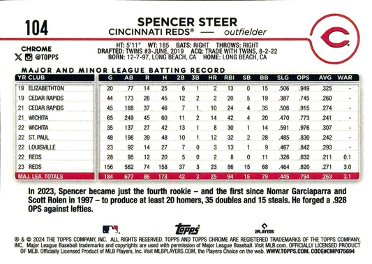 2024 Topps Chrome Spencer Steer ASR Cincinnati Reds #104