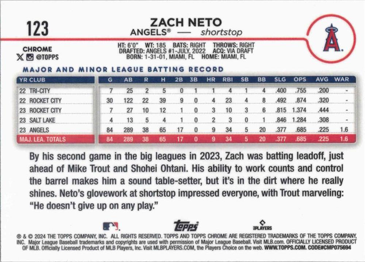 2024 Topps Chrome Zach Neto Los Angeles Angels #123