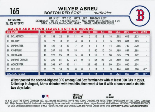 2024 Topps Chrome Wilyer Abreu RC Boston Red Sox #165