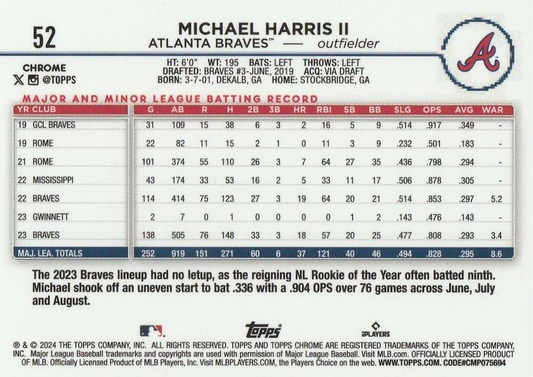 2024 Topps Chrome X-Fractor Parallel Michael Harris II Atlanta Braves #52