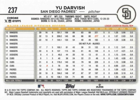 2024 Topps Chrome Yu Darvish San Diego Padres #237