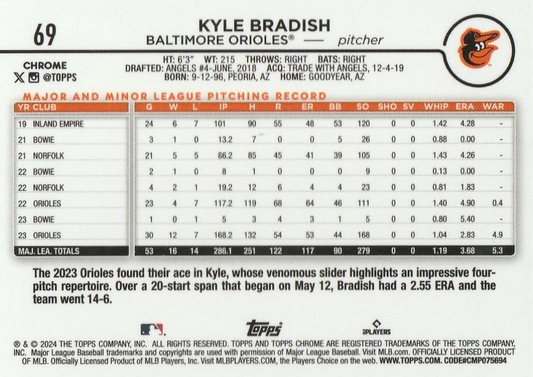 2024 Topps Chrome X-Fractor Parallel Kyle Bradish Baltimore Orioles #69
