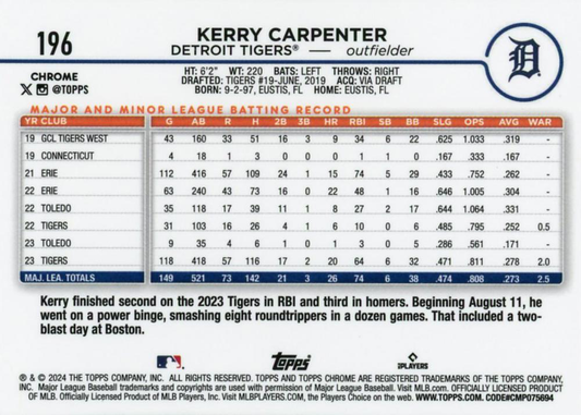 2024 Topps Chrome X-Fractor Parallel Kerry Carpenter Detroit Tigers #196