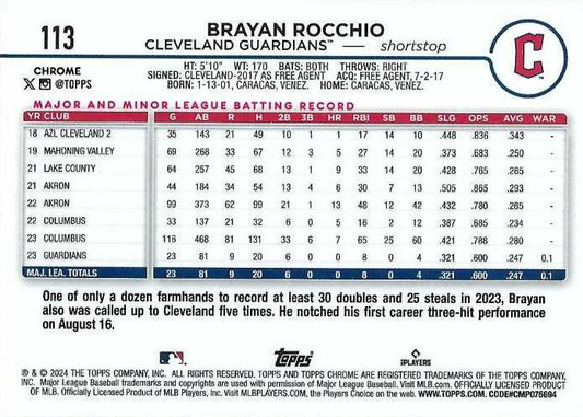 2024 Topps Chrome X-Fractor Parallel Brayan Rocchio Cleveland Guardians #113
