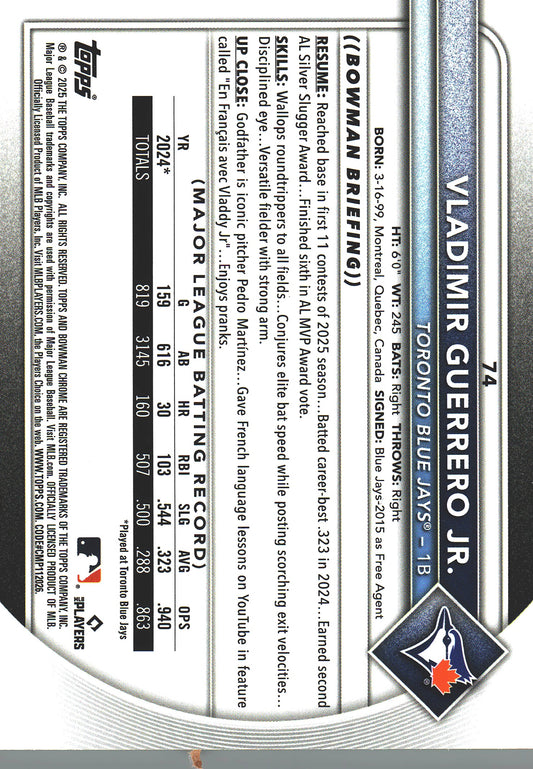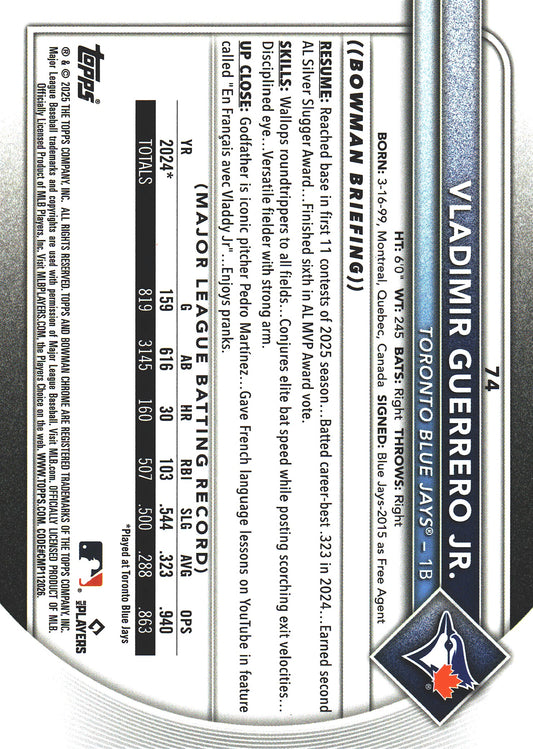 2025 Topps Bowman Chrome Vladimir Guerrero Jr Wave /100 #74 Toronto Blue Jays