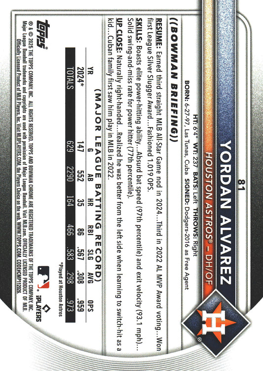 2025 Topps Bowman Chrome Yordan Alvarez Gold /50 #81 Houston Astros