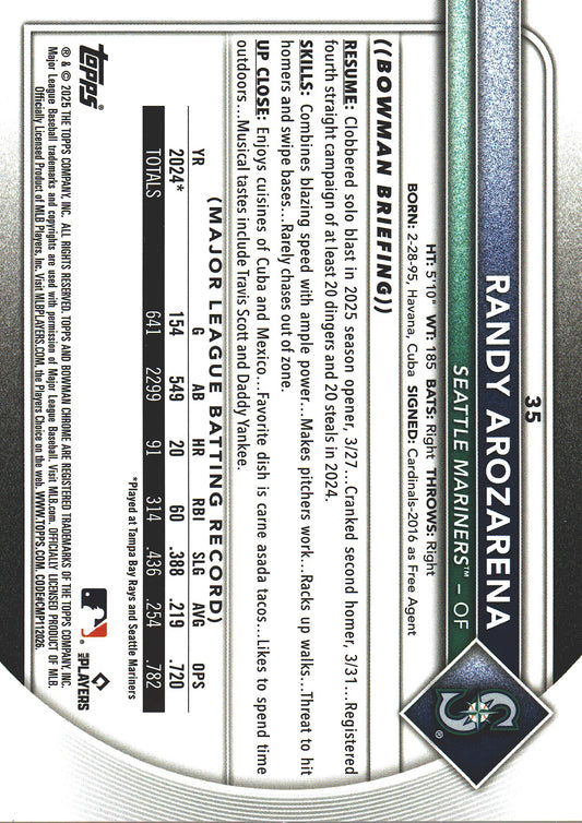 2025 Topps Bowman Chrome Randy Arozarena Orange Geometric /25 #35 Seattle Mariners