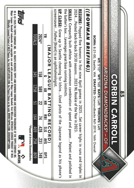 2025 Topps Bowman Chrome Corbin Carroll Aqua Geometric /125 #85 Arizona Diamondbacks