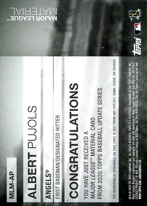 2020 Topps Update Material Relics Albert Pujols #MLM-AP Los Angeles Angels